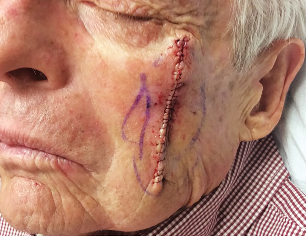 Paying the Price: In 2017 Dr. McCarthy had Mohs surgery on a large SCC on his cheek. Dr. Hanke was able to remove all the cancer and reconstruct the wound, which healed well.