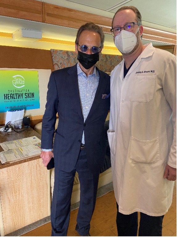 We ended the month with an event in New Jersey – our first since 2018. Adolfo Fernandez-Obregon, MD, and his resident screened nine participants in Clifton. A Skin Cancer Foundation staffer stopped by with his father-in-law who was anxious to be screened. Dr. Obregon identified a potential basal cell carcinoma on his skin.