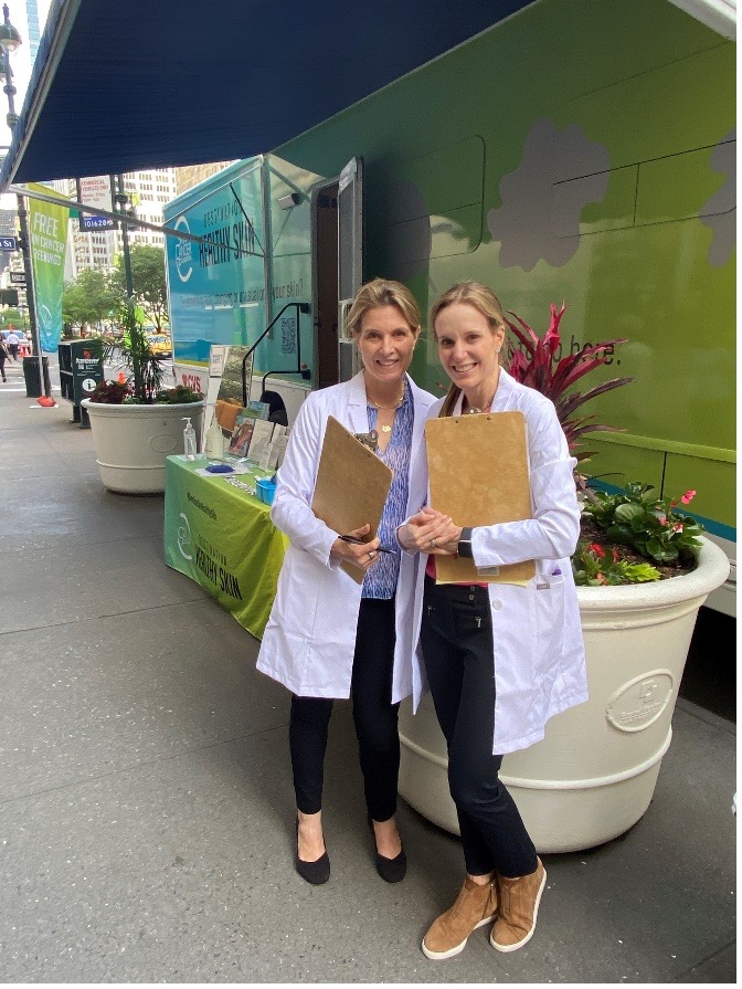 The following day, our volunteer dermatologists Carin Gribetz, MD, and Jane Yoo, MD, conducted 41 screenings and documented a suspected melanoma, two suspected BCCS and a suspected SCC. Participants without insurance were especially grateful for the opportunity to get a free skin exam.